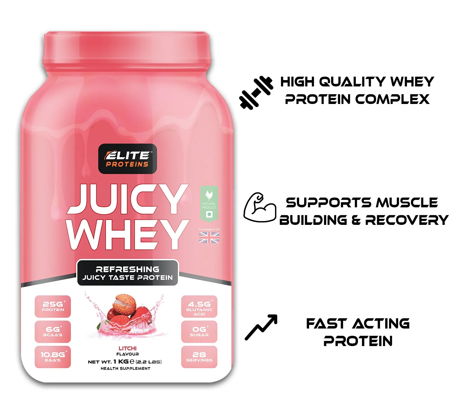 Whey protein isolate is known for its light, fast-digesting nature, and JUICY Whey takes that advantage further by offering a refreshing, water-based, fruit-flavor formula. Unlike heavy, milky shakes, JUICY Whey mixes into a light and hydrating drink, making it perfect for people who prefer a smooth, refreshing experience rather than a thick protein shake. This makes it ideal for summer workouts, cardio sessions, and people who struggle with bloating or digestive discomfort from regular whey protein.
