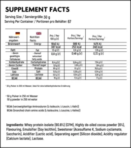 Stir 30g powder (3 scoops) into 300 ml Of low-fat milk. For advanced Athletes 50g powder (5scoops) in 250ml Of water.